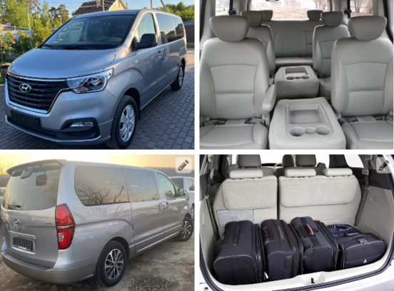 Микроавтобус Hyundai Grand Starex, а также комфортные легковые авто.